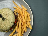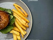 ESKALOPKI DROBIOWE W CIEŚCIE PIWNYMPIERŚ PANIEROWANA W CIEŚCIE PIWNYM, FRYTKI STEKOWE, MIX SAŁAT Z POMIDORKAMI KOKTAILOWYMI, ŚLIWKĄ Z SOSEM OGRODOWYM