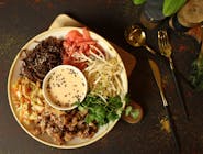 BOWL NR 2 - Z MARYNOWANYM TOFURYŻ/ KIMCHI/ GRZYBY MUN/ KIEŁKI FASOLI MUNG/ IMBIR/ KOLENDRA/ SOS KOKOSOWE CHILI